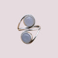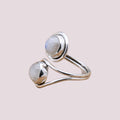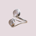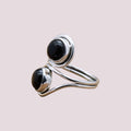 Add a modern twist to your accessory collection with this handcrafted 925 Sterling Silver Double Round Stone Adjustable Ring. This open band design features two bezel-set round cabochon stones that face each other in a bold, symmetrical layout. The wraparound style ensures a comfortable, adjustable fit, perfect for everyday wear or statement layering.