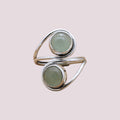 925 Sterling Silver Natural Double Round Gemstone Adjustable Ring