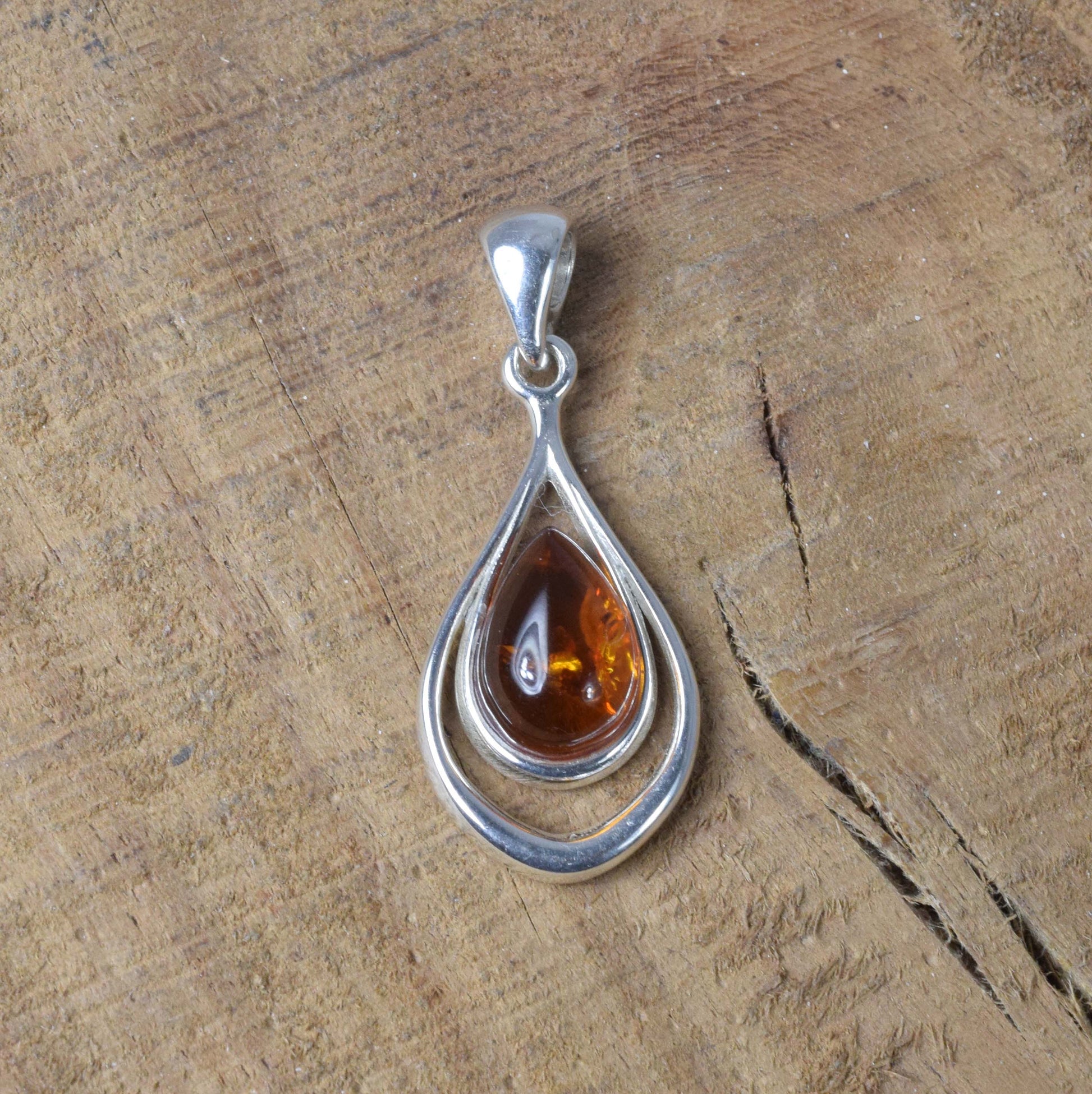 Baltic Amber 925 Sterling Silver Teardrop Pendant Necklace