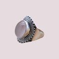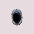 Elevate your style with this handcrafted 925 sterling silver ring, designed with intricate detailing and a vintage bohemian flair. Featuring a smooth, polished oval centerpiece, this ring is framed with beautifully textured silver beadwork and twisted rope accents, offering a bold yet elegant look. Perfect for stacking or wearing solo, this ring blends traditional craftsmanship with timeless appeal. Ideal for daily wear or special occasions.
