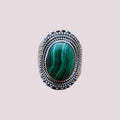 925 Sterling Silver Natural Gemstone Detailed Oval Frame Ring